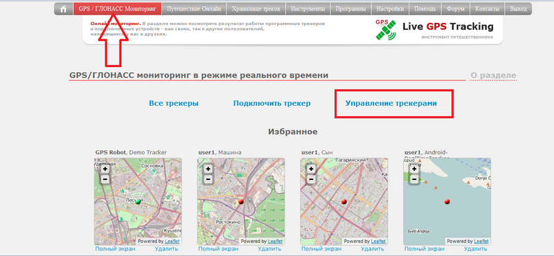 Посмотреть все трекеры" . Нажмите на него для перехода на карту.