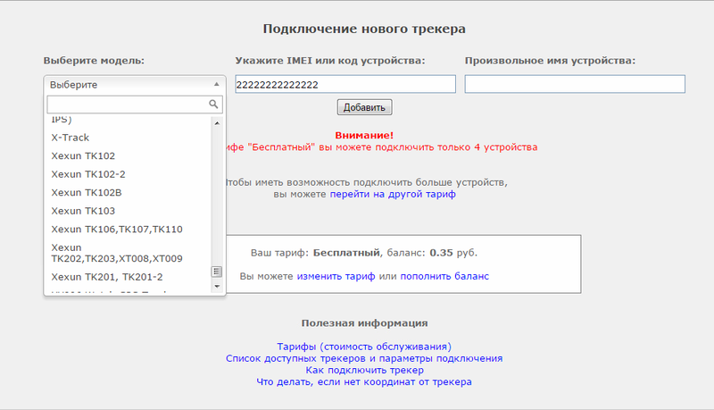- Ваш трекер в пакете с данными присылает укороченный IMEI номер, либо ID, который указан на коробке с трекером, в гарантийном талоне или инструкции. А вы при подключении в аккаунт ввели полный IMEI.