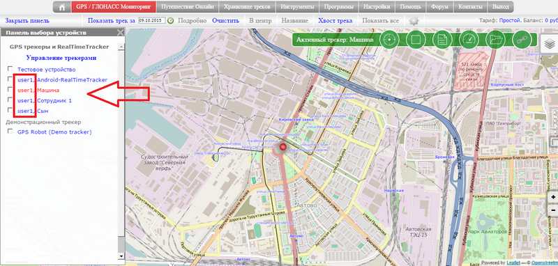 • Смотреть перемещение трекера в реальном режиме времени