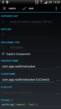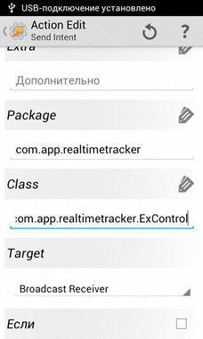 Как и в случае других интентов, в настройках сторонних приложений требуется указывать пакет нашего приложения (Package) и компонент, отвечающий за выполнение команд (Class).