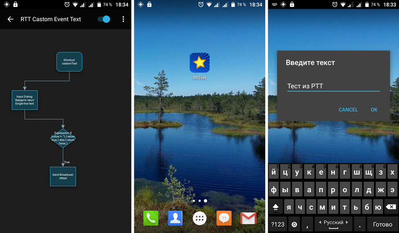 По нажатию на виджет открывается окно для ввода текста.