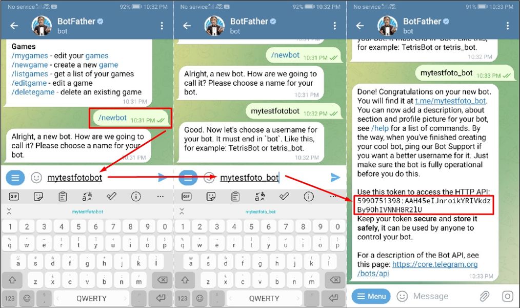 В нашем примере это "mytestfoto_bot"