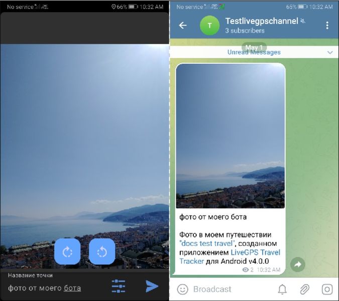 Сделайте фото через LiveGPS Travel Tracker и она должна появиться в выбранном канале/группе.