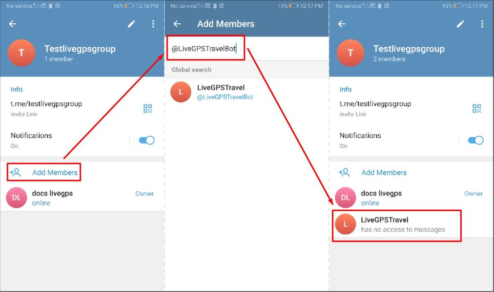 Откройте настройки вашей группы и добавьте бота в участники группы.