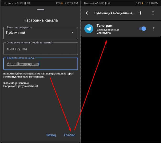 Установите переключатель "Публиковать через стандартный бот LiveGPS Travel Tracker"